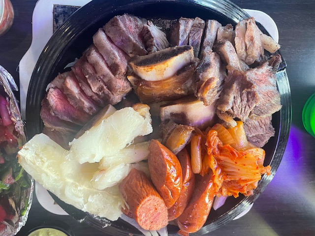 대표 메뉴는 레귤러 콤보(클래식 아사도·비트샐러드·세비체·주류 포함 $75)와 프리미엄 콤보(치즈 라이스·감자샐러드 포함 $85). 고기는 주문 즉시 구워지기 때문에 예약은 필수이며, 기본은 웰던으로 제공되지만 최소 1시간 전 전화 예약 시 미디엄 레어로도 주문할 수 있다.