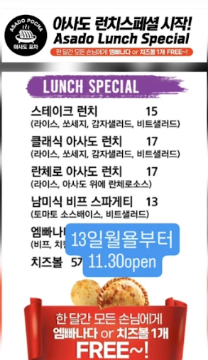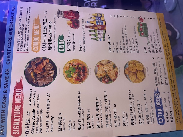 또한 다른 포차와 달리 해피아워가 오후 9시부터 자정(12AM)까지로 늦은 시간대에 운영되며, 이 시간 동안 소주 $9, 맥주 $8, 안주 $10 이하로 즐길 수 있는 ‘아사도 스타일’의 특별 할인이 제공된다.