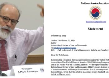 존 마크 램시어 미국 하버드대 교수. (사진 : 하버드로스쿨 유튜브 화면) 2015.10.6. LA 한인회장 등 미 전국 44개 한인회장들이 지난...