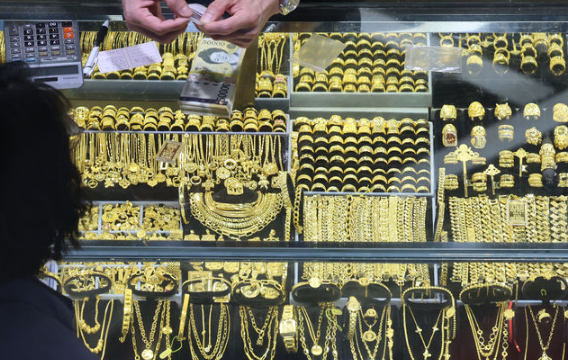 한 금은방에서 고객이 금 거래를 하고 있다.
