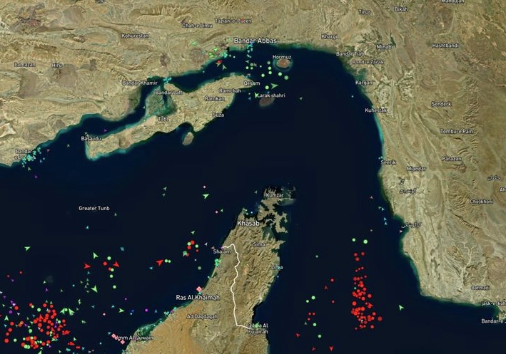4일 오후 2시쯤 호르무즈 해협 모습. 사실상 봉쇄돼 지나다니는 선박 없이 텅 빈 상태다. (사진=마린 트레픽 갈무리) 2026.03.04 photo@newsis.com