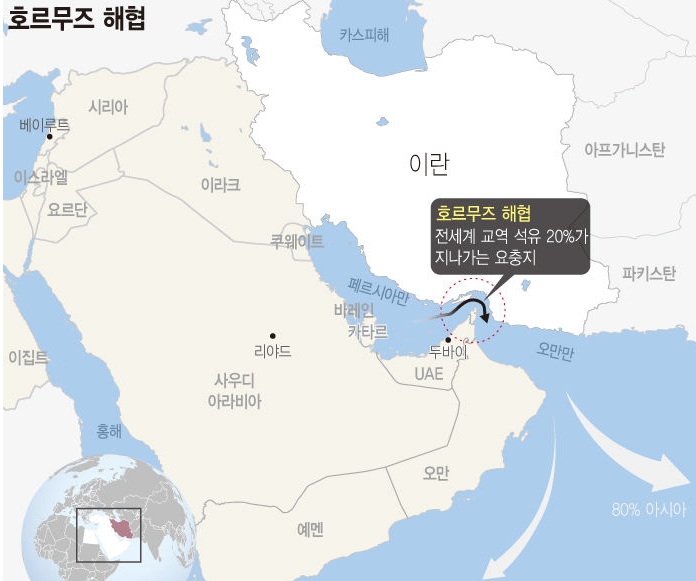 선박들은 이란 북쪽 해안과 맞닿은 좁은 해협인 호르무즈 해협을 안전하게 통과하지 못하고 있다.