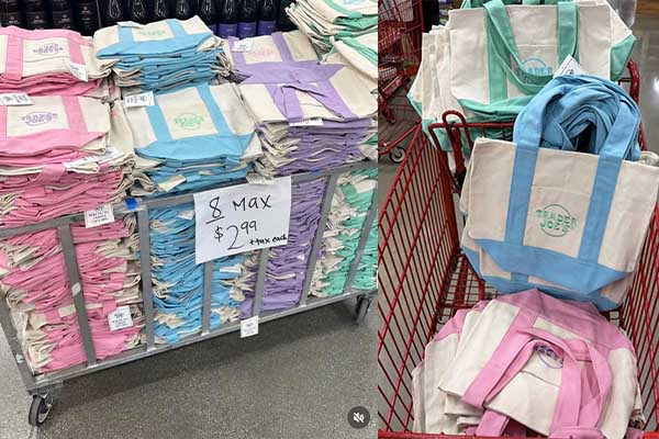 이번 미니 토트백은 지난해 봄과 같은 색상인 연한 파랑, 연한 분홍, 라일락, 민트 그린으로 제공되며, 가격은 개당 2.99달러다. 일부 남가주 매장에서는 이미 지난 주말에 제품을 확인한 고객도 있었다.