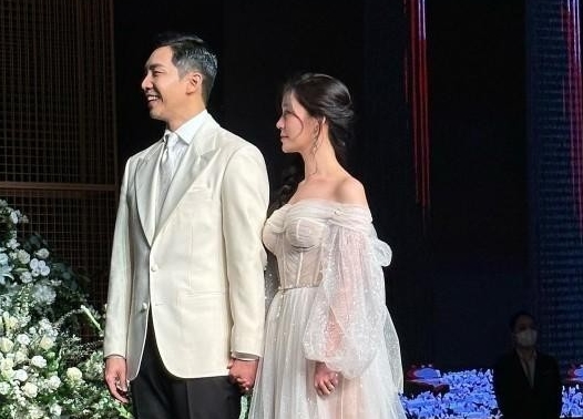 가수 겸 배우 이승기와 결혼한 배우 이다인이 결혼식 주인공다운 화려한 드레스를 선보였다.