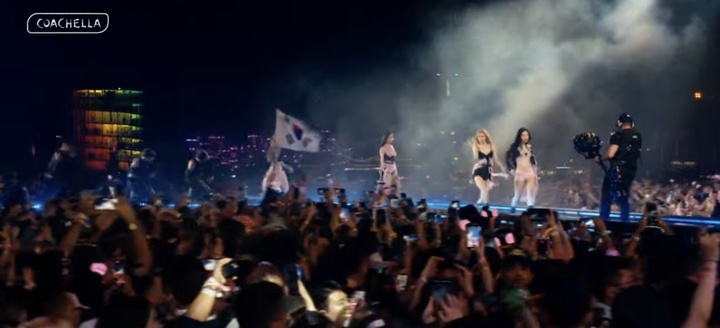 이날 1시간20분가량 약 18곡을 들려줬는데 빈틈이 없었다. 4년 전 이곳에서 공연한 뒤 ‘핑크첼라’라는 별칭이 생겼는데 이에 걸맞은 무대였다. 영상으로 봤을 뿐인데도, 네 멤버는 ‘분홍빛 품은 코첼라 검정 밤’이라고 칭할 정도로 분위기를 압도했다. 2019년엔 풋풋함이 있었는데 이번엔 무엇보다 노련함이 돋보였다. 객석에선 태극기가 펄럭였고, 블랙핑크의 응원봉인 ‘뿅봉’도 등장했다.