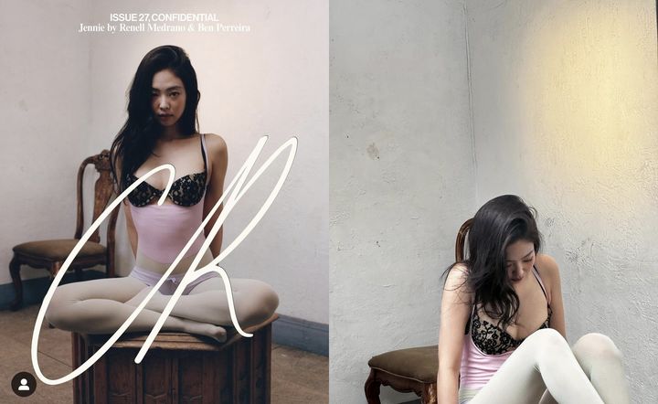 제니는 지난 2일 본인 소셜미디어에 프랑스 패션 매거진 ‘CR 패션북’과 함께 한 화보와 비하인드 사진을 올렸다.