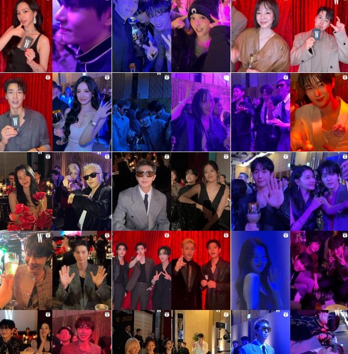 ‘유방암 인식 향상 캠페인’ 자선 행사 현장. 참석자들이 포토월과 파티장에서 포즈를 취하고 있다. (사진=W코리아 인스타그램 캡처) 2025.10.17. photo@newsis.com