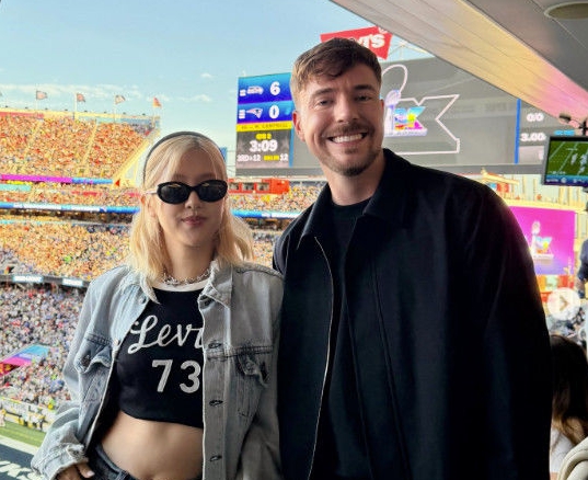 공개된 사진에는 미국 캘리포니아주 산타클라라 리바이스 스타디움에서 열린 ‘제60회 슈퍼볼’ 현장을 찾은 로제와 미스터비스트의 모습이 담겼다.
