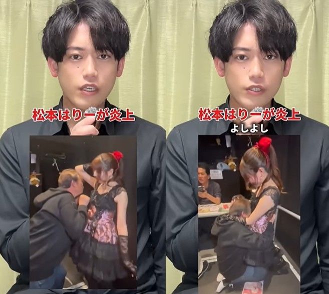 온라인을 통해 확산된 영상에는 한 중년 남성 팬이 팔을 든 마쓰모토의 겨드랑이에 코를 대고 냄새를 맡는 장면이 담겼다. 이후 그녀는 해당 팬을 따뜻하게 안아주는 등 밀착 스킨십을 이어갔다.