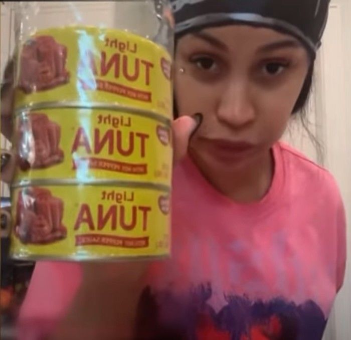 최근 카디비는 자신의 인스타그램 라이브 방송에서 “마트에서 한국 고추참치를 사왔다”고 말했다. 이어 그녀는 고추참치를 밥에 비빈 뒤 마요네즈를 곁들여 김에 싸 먹으며 “한국인들은 미쳤다. 조합이 완벽하다.”고 감탄했다.