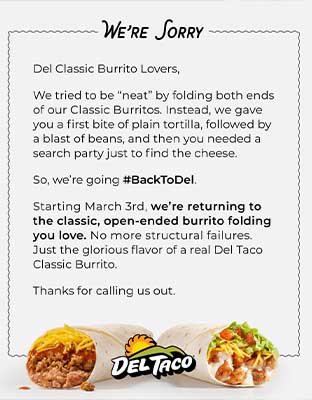 몇 달 전 델 타코는 클래식 부리토의 양쪽 끝을 모두 접는 방식으로 변경했다. 작은 변화였지만 고객들은 즉각 알아차렸고, 반응은 좋지 않았다.