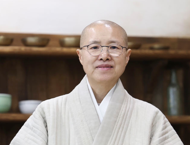 선재스님이 지난 12일 서울 종로구 한국사찰음식문화체험관에서 뉴시스와 인터뷰를 마치고 기념촬영을 하고 있다. 2025.12.14. ks@newsis.com