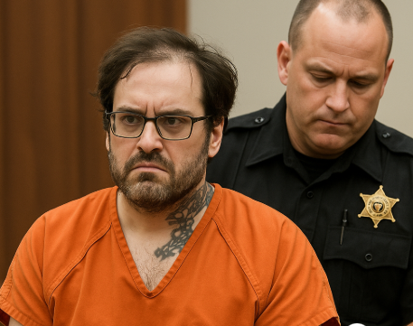 유타주 법정에서 선고 공판을 앞두고 교도관의 호송을 받는 니콜라스 로시. 문신으로 신원이 확인돼 체포된 그는 2건의 성폭행 혐의로 징역형을 선고받았다. 이 이미지는 AI 생성 합성 이미지