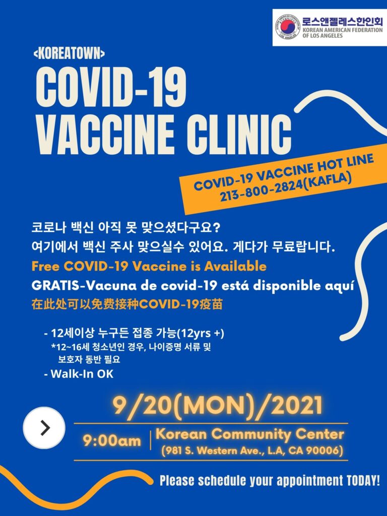 LA 한인회가 7차 백신접종 및 무료 코로나 테스트 행사를 연다.
