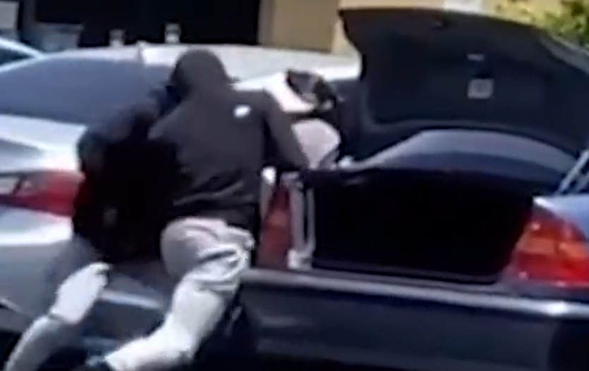 롤렉스 시계를 강탈한 강도들은 흰색 닷지 챌린저 차량을 타고 도주했으며, 이 차는 종이로 된 임시 번호판을 달고 있었다.