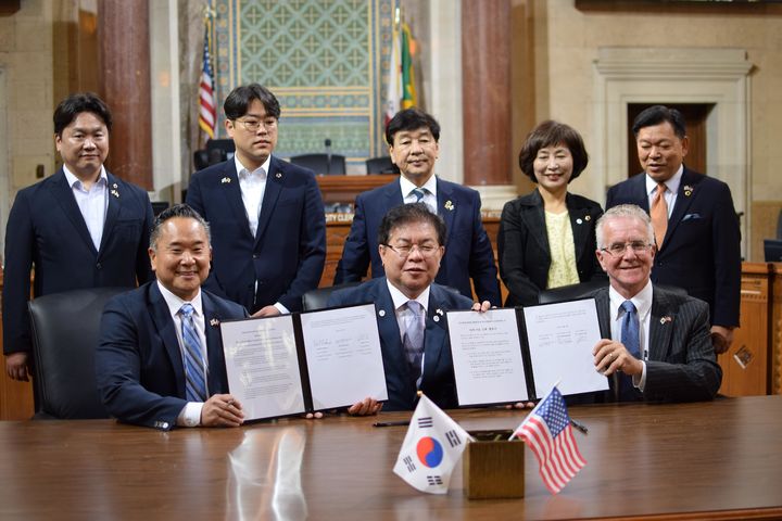 26일 부산 시의회에 따르면 부산시의회의 대표단(안성민 의장, 반선호, 강철호, 문영미, 최도석, 양준모 시의원)이 지난 5월 23일부터 3박 6일 간 LA시의회를 방문했다. 결의안은 부산시의회의 대표단이 LA시의회 방문 시 추진한 사항으로 LA시의회 존 리 의원이 발의했다.