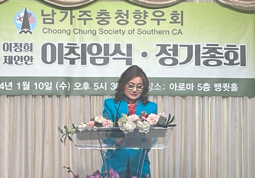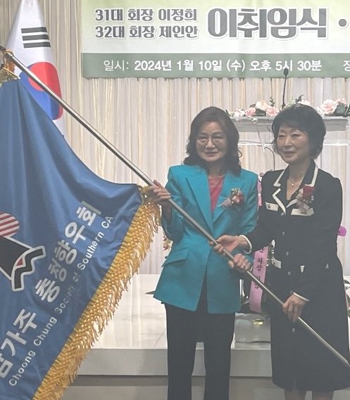 31대 이정희 전 회장에 이어 이날 32대 회장에 취임한 제인 안 신임회장은 ” 지난해 어려움을 겪었던 충청향우회가 선향후사의 정신으로 이제 본연의 길로 나아갈 수 있게 됐다”며 “고향의 정과 따뜻함을 느끼는 충청향우회를 만들어 가는데 최선을 다할 것”이라고 다짐했다.
