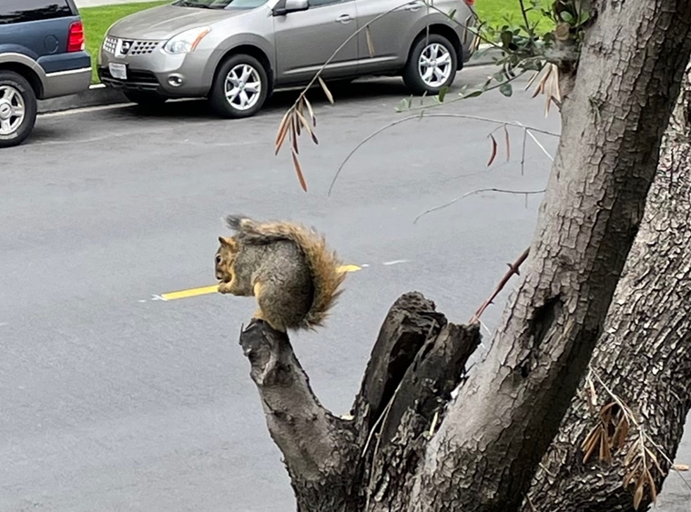 한인타운 아드모어길 한 가로수 위에 다람쥐 한 마리가 봄날씨를 만끽하고 있다[ KnewsLA 독자 제공사진]
