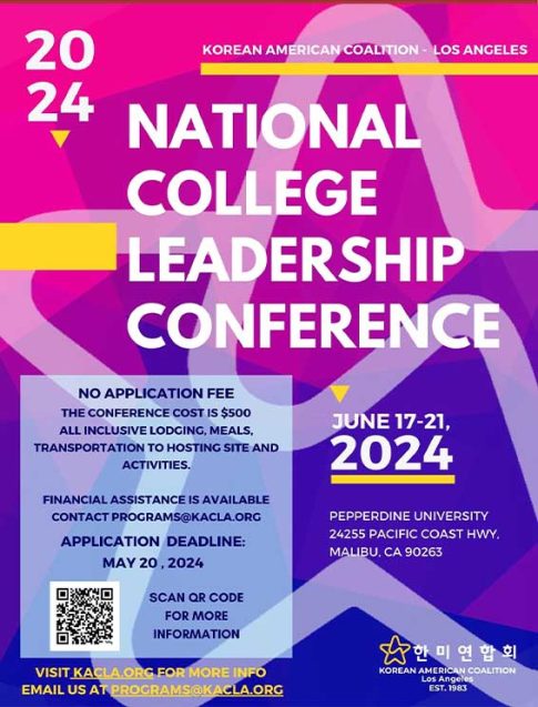 한미연합회(KAC, 대표 유니스 송)는 6월 17일(월)부터 21일(금)까지 페퍼다인 대학교에서 ‘2024 전국 대학 리더십 컨퍼런스 (National College Leadership Conference, 이하 “NCLC”)’를 개최한다고 밝혔다.
