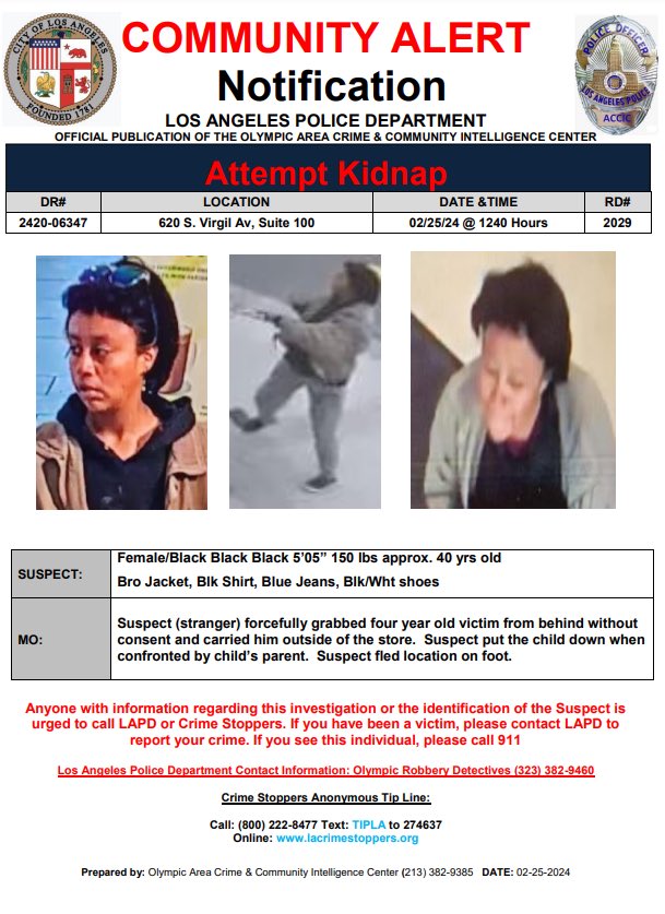 관련기사 한인타운 6가 타겟 매장서 대낮 아동납치 시도…여성 용의자 체포