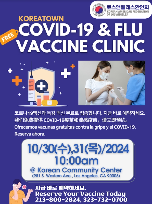 (알림) LA 한인회, 독감 및 코로나 백신 무료접종