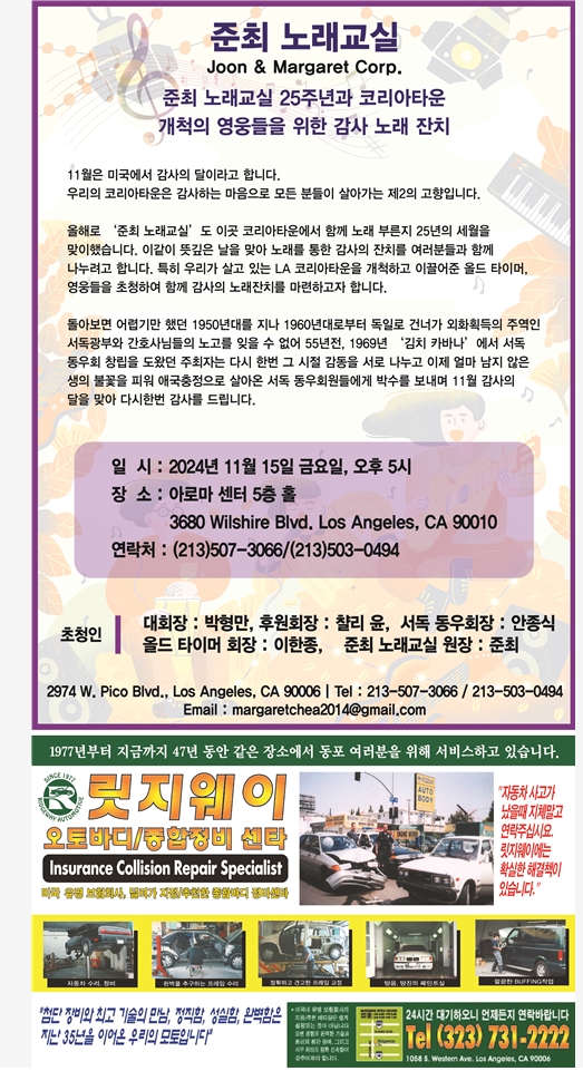 [알림] 한인타운 개척영웅을 위한 감사 노래잔치