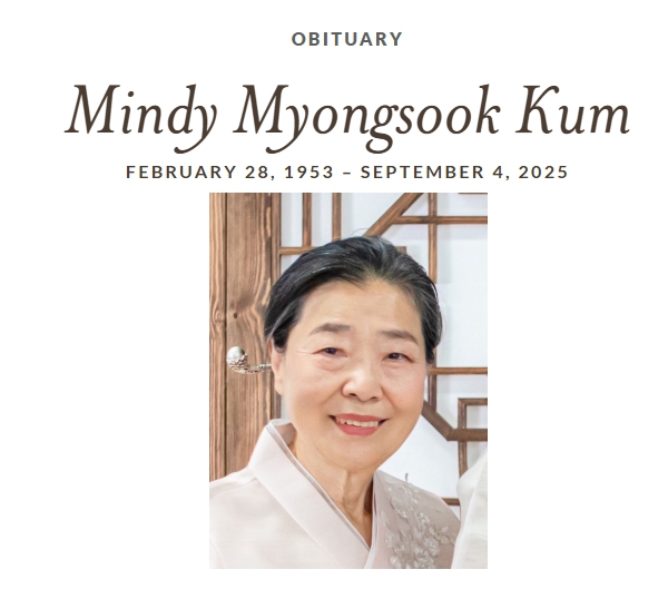 지난 9월 4일 샌버나디노 카운티 펠런 자택에서 세입자에게 살해된 한인 여성 금명숙(민디 금, 72) 여사의 장례가 오는 29일(월) 위티어 로즈힐스 메모리얼 파크에서 엄수된다.