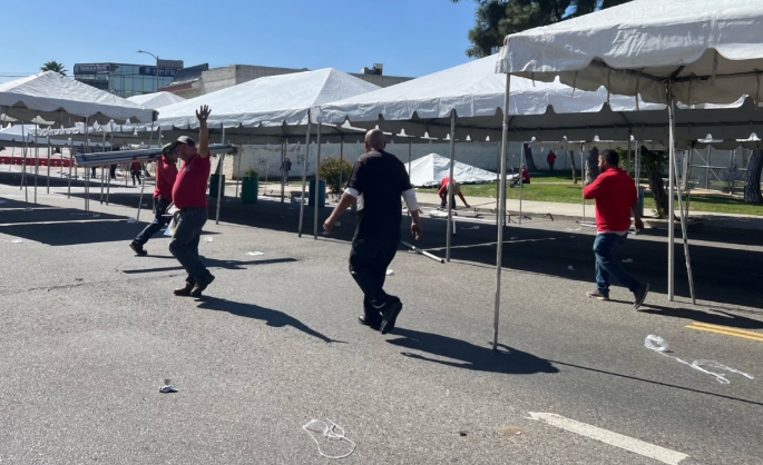 오는 16 일 개막을 앞둔 LA 한인축제 준비가 한창이다. 9 일 서울국제공원에서 축제 부스 설치 작업이 진행되고