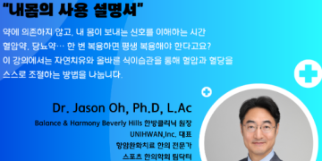 약에 의존하지 않고 자연치유를 통해 혈압과 혈당을 스스로 조절하는 방법을 배우는 강연이 열린다. 오는 25일 토요일, 애너하임에 위치한 남가주 사랑의 교회(1111 N. Brookhurst St., Anaheim, CA 92801)에서 열리는 연세헬스엑스포(Yonsei Health Expo)에서는 ‘자연치료 한의사의 웰빙 토크: 내 몸의 사용 설명서’를 주제로 제이슨 오 박사(Dr. Jason Oh, Ph.D., L.Ac)의 강연이 진행된다. 이번 강연은 현대인들이 흔히 복용하는 혈압약, … 연세헬스엑스포 ‘자연치료 웰빙토크’ .. 25일 남가주 사랑의교회 계속 읽기