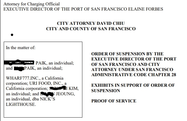 샌프란시스코 시검찰과 항만국(Port of San Francisco)에 따르면, 닉스 라이트하우스 및 관련 회사를 운영해온 한인 업주 백모씨 부부는 부부는 지난 2023년 5월부터 11월 사이 항만청 직원과 언더커버 FBI 요원에게 뇌물성 현금봉투를 건네며 리스 평가 과정에 개입하려 한 혐의로 연방 검찰에 기소된 상태로 알려졌다.