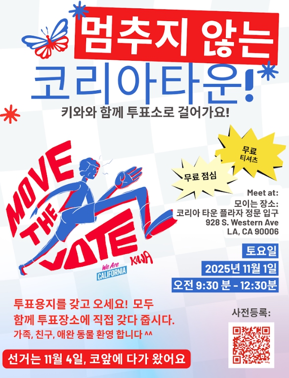 키와, 11월 1일 ‘코리아타운 투표소로 함께 갑시다’ 행진 개최… 무료 티셔츠·점심 제공