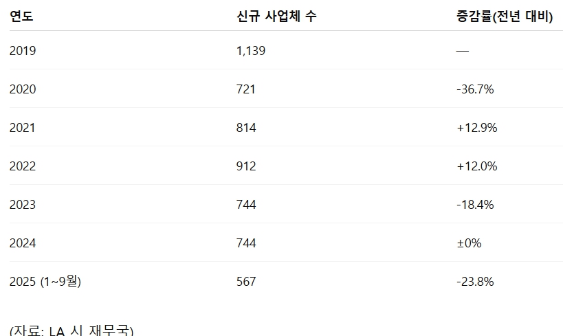 LA 시 재무국(Office of Finance)에 따르면, 2025년 7~9월 사이 시 전역에서 새로 문을 연 사업체는 5,846곳으로 집계됐다.