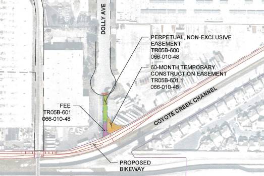 첫째, 돌리 애비뉴(Dolly Avenue) 구역이다. 5650 Dolly Avenue에 위치한 상가 주차장 일부가 수용 대상에 포함됐다. 카운티는 주황색으로 표시된 구간에 대해 60개월 한시 공사사용권을 설정하고, 보라색 구간은 영구 소유권 이전, 초록색 구간은 영구 비배타적 통행권을 확보할 계획이다. 공사 기간 동안 주차면 축소와 차량 진입 불편이 예상되며, 완공 이후에도 일부 부지는 자전거길 유지관리 통로로 상시 점유될 가능성이 있다.
