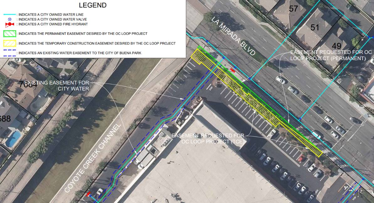 넷째, 라미라다 블러바드(La Mirada Blvd) 접점 구역이다. 5301 Beach Boulevard 인근 조경대 일부가 공사 구간으로 포함돼 노란색 구간에는 60개월 한시 공사사용권, 초록색 구간에는 인도 확장을 위한 영구 구역권이 설정된다. 완공 후 인도 폭이 넓어지지만, 상가 접근성 저하와 조경 훼손이 단기적 불편을 초래할 수 있다.