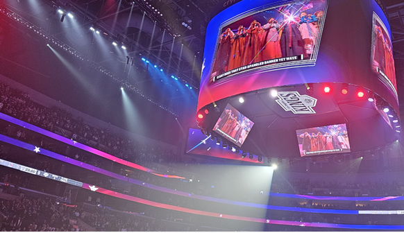 LA 크립토닷컴 아레나가 은은한 하모니카 선율과 우아한 한복의 색채로 물들었다.