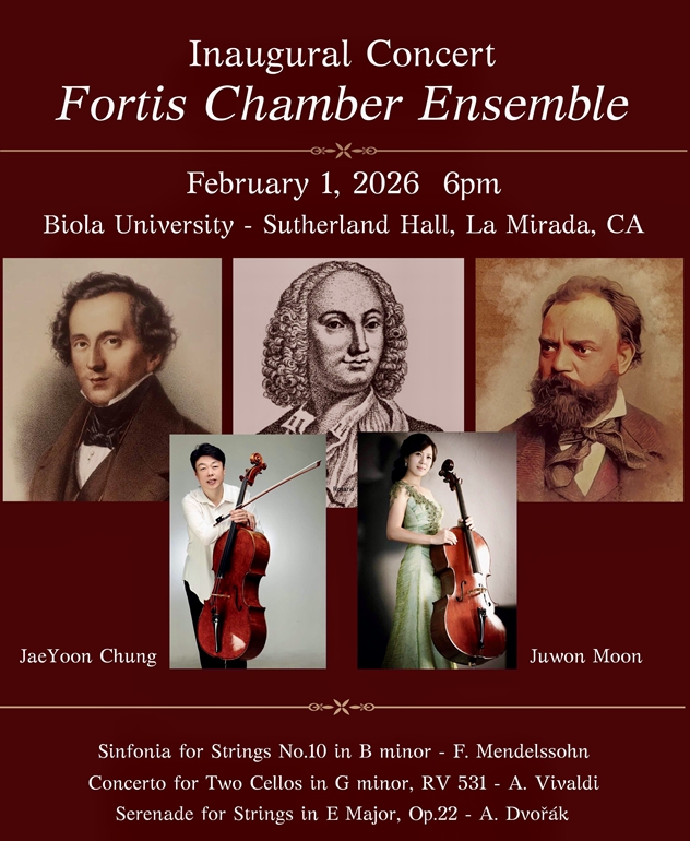 플러튼을 연고로 활동하는 포르티스 체임버 앙상블(Fortis Chamber Ensemble, 이하 FCE)이 2월 1일(일) 라 미라다에 위치한 Biola University 서덜랜드 홀(Sutherland Hall)에서 창단 연주회를 열고 지역사회에 첫선을 보인다.