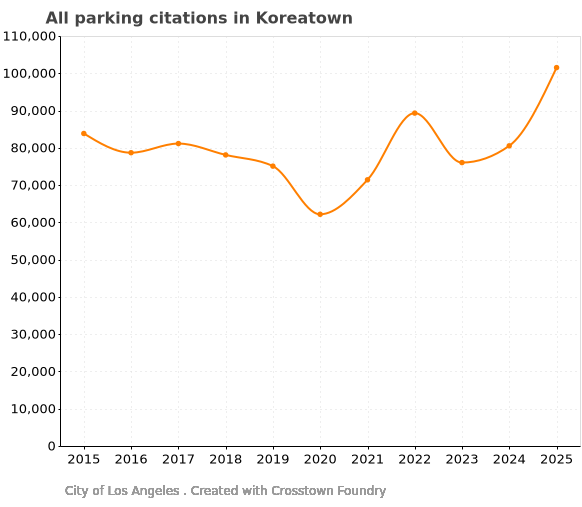 LA 전체 통계만 보면 단속은 줄어들고 있다. 그러나 한인타운에서는 여전히 “30분을 돌아도 자리 없다”는 말이 현실이다.