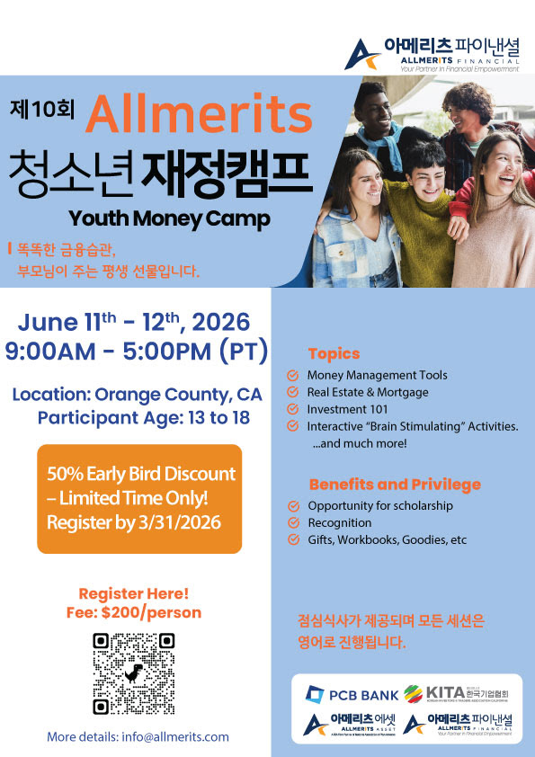 청소년들에게 올바른 경제 관념을 심어주고 스스로 자립할 수 있는 기초를 닦아주는 ‘제10회 아메리츠 청소년 재정캠프’가 오는 2026년 6월 대면 행사로 개최된다.