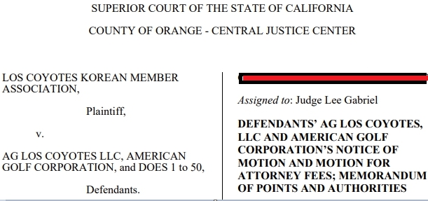 오렌지카운티 수피리어코트에 제출된 소송 문서. 로스 코요테스 한인 회원 협회(KMA)가 제기한 소송에서 피고 측이 변호사비 청구를 위해 제출한 법원 서류 일부.