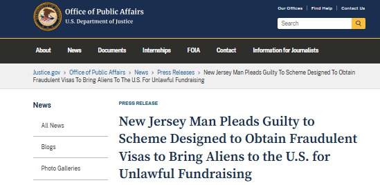 연방 법무부는 지난 16일 뉴저지 거주 김형기(60)씨가 비자 사기 공모, 외국인 불법 체류 조장 공모, 세금 포탈 혐의에 대해 유죄를 인정했다고 발표했다. 김씨는 오는 8월 19일 연방 법원에서 선고를 앞두고 있으며, 최대 징역 10년이 선고될 수 있다고 법무부는 밝혔다.