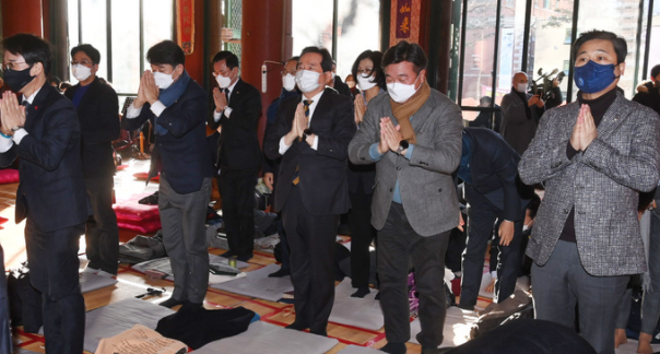 여기에 기독교인인 이 후보 부인 김혜경씨 등이 지속적으로 전국 사찰을 돌며 소통 행보를 하고 지난 17일 윤호중 원내대표와 이 후보 후원회장인 정세균 전 국무총리를 비롯한 민주당 의원 36명이 서울 조계사를 찾아 참회의 뜻을 담은 108배를 올리기도 했다.