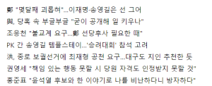 설 연휴 전까지 부산·울산·경남(PK)를 순회하고 있는 송 대표도 전날 부산 해운정사를 찾아 조계종 종정 진제 대종사를 예방하는 등 성난 불심을 달래는 데 부심하고 있다.