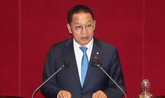 신정훈 더불어민주당 의원이 4일 오후 서울 여의도 국회 본회의장에서 열린 제405회국회(임시회) 제2차 본회의 경제 분야 대정부 질문에서 발언을 하고 있다.