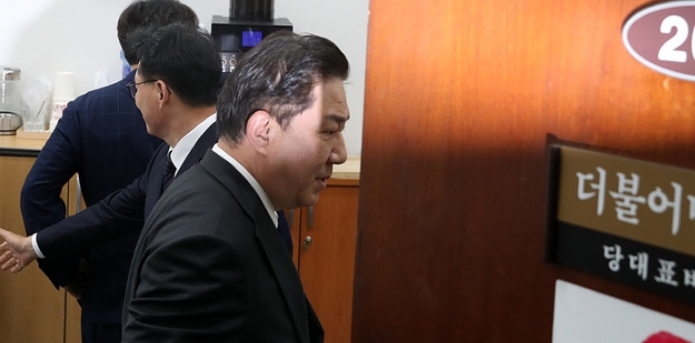 박광온 더불어민주당 원내대표와 김남국 의원 코인 진상조사단장인 김병기 의원이 12일 오후 서울 여의도 국회 더불어민주당 대표실로 들어서고 있다. 이날 민주당 지도부는 김남국 의원 코인 진상조사단의 보고를 받는다.