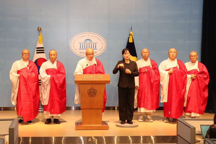 태고종 행정부원장 도성 스님과 총무원 주요 스님들은 1일 국회 소통관에서 열린 기자회견에서 ‘정치권의 종단 모욕 및 명예훼손 행위에 대한 엄중한 입장’에 관한 성명을 발표했다.