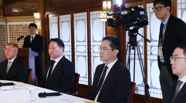 왼쪽부터 정의선 현대차그룹 회장, 대한상공회의소 회장인 최태원 SK회장, 이재용 삼성전자 회장, 구광모 LG회장. (대통령실통신사진기자단)