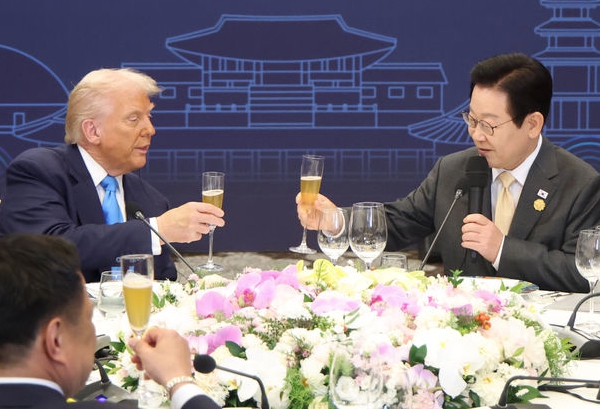 AFP에 따르면 트럼프 대통령은 29일 경북 경주에서 힐튼호텔 그랜드볼룸에서 이재명 대통령 주최로 열린 정상 특별만찬에서 무역 합의에 도달했는지에 “도달했다(We did)”라고 말했다.
