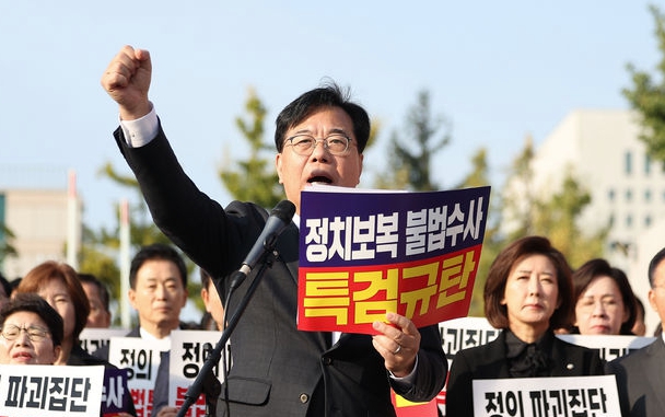 송 원내대표는 “정말 끝까지 추진을 중단하겠다는 것인지 아니면 법원이 재판을 재개하면 그때 다시 재판중지법을 추진하겠다는 건지 정확한 의도를 알 수 없는 애매한 태도만 보였다”고 했다.