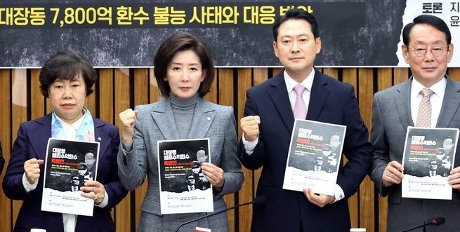 특별법 발의를 계획한 나경원 의원은 “나라가 정말 쑥대밭”이라며 “단군 이래 최악의 비리라고 했던 대장동 개발비리가 단군 이래 최대의 면죄부가 되어 버리고 말았다. 11만% 수익이 대장동 범죄의 실체인데 그 수익을 그들 주머니에 그대로 두겠다는 것”이라고 했다.