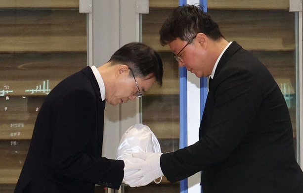 캄보디아 범죄단지에서 고문을 당해 숨진 한국인 대학생 A(22)씨의 유해가 21일 오전 인천국제공항 2터미널을 통해 송환돼 안중만 경북경찰청 형사기동대장에게 인수되고 있다. 2025.10.21. kch0523@newsis.com